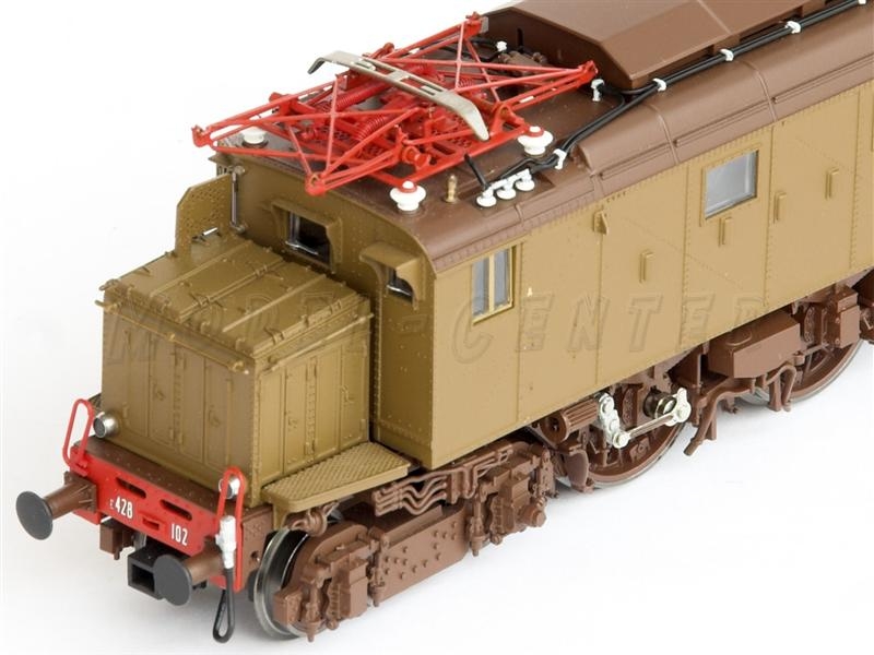 Locomotiva elettrica E 428.102 di 1a serie lok-sound, con avancorpi, biellino e separatore D'Arbela. Presa per decoder a 8 poli, volano sull'asse motore, respingenti molleggianti, luci bianche calde a seconda del senso di marcia - Epoca IV - Scala HO.