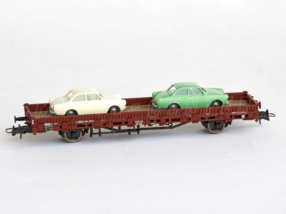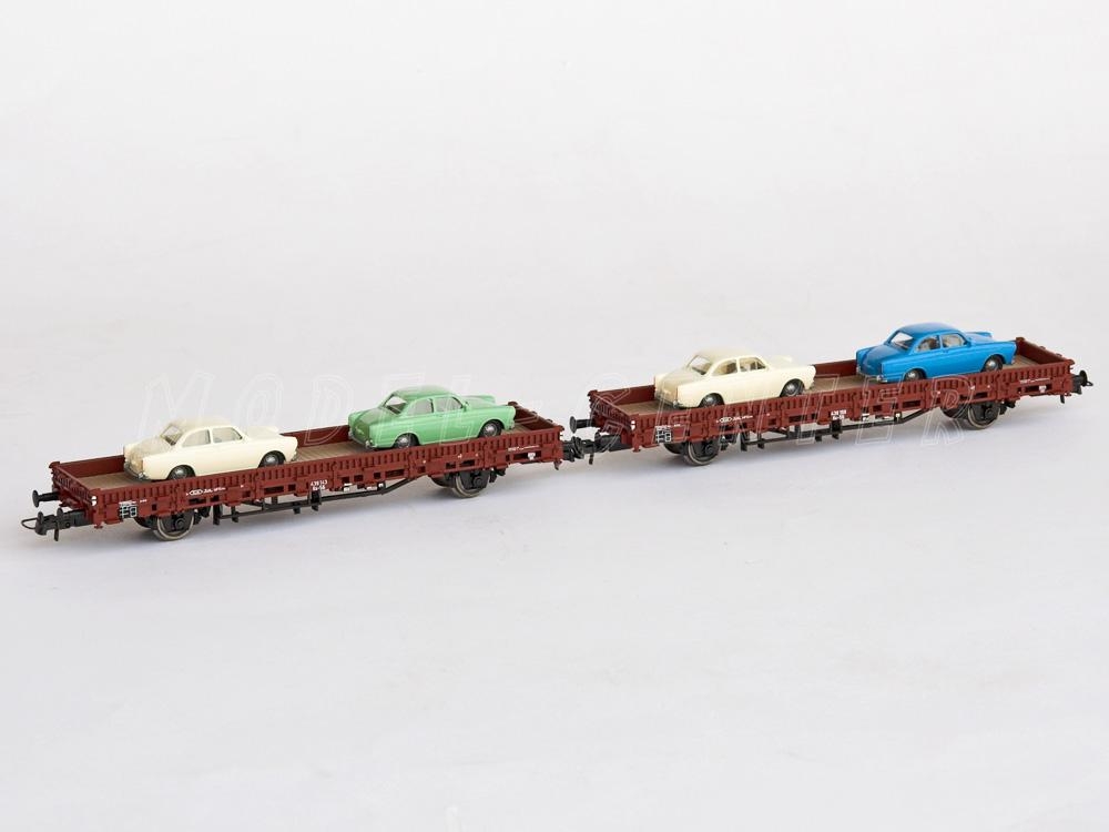 Set 2 carri a stanti trasporto auto delle DB, epoca III, Lunghezza < 16,2 cm X 2 >, Scala HO.