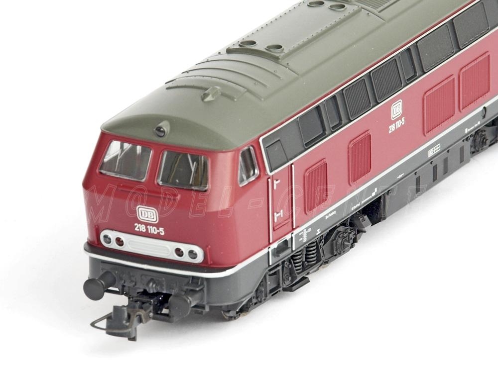 Locomotiva diesel BR 218 delle DB in versione epoca IV con volano sull'asse motore, presa NEM 8 poli per inserimento decoder digitale, luci bianco/rosse funzionanti a seconda del senso di marcia, colorazione rosso antico. Epoca IV - Scala HO