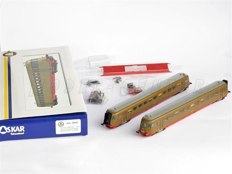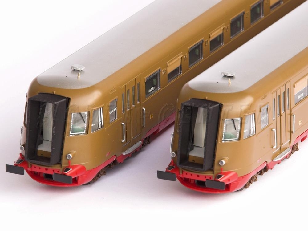Set 2 automotrici Aln 990.3010 + Aln 990.3012 OM , livrea castano/isabella, deposito localita' Pisa dell FS, motorizzata + folle. Perfetta riproduzione in scala HO, con fine incisione di tutti i particolari. Verniciature conforme a schema FS, tampografie finemente realizzate, trazione su entrambi i carrelli, predisposizione per decoder a 21 pin, tipica cabina del macchinista interamente riprodotta, arredamento interno integralmente riprodotto, illuminazione dei fari con controllo luci bianche/rosse fino a composizioni di quattro elementi, illuminazione interna di serie. Epoca III - Scala HO.