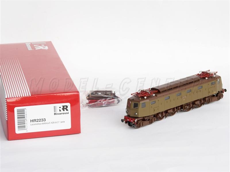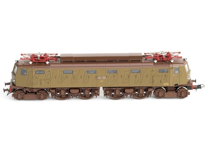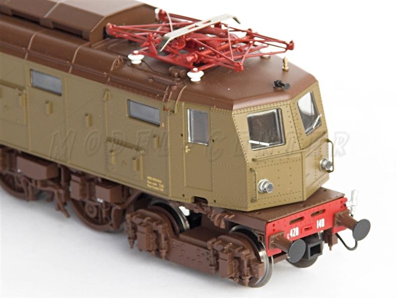 Locomotiva elettrica E 428.140 di 2a serie semiaerodinamico, livrea castano/isabella, Dep. Loc. Foggia. Presa nem a 8 poli per decoder, volano sull'asse motore, respingenti molleggianti, luci bianche caldo a seconda del senso di marcia - pantografi funzionanti - Lunghezza < 22,2 cm > - Epoca IV - Scala HO.