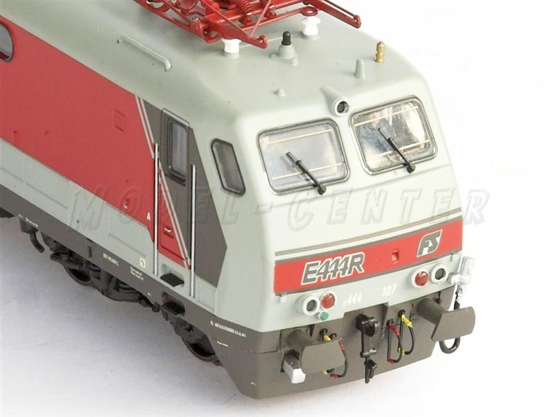 Locomotiva elettrica E.444R.107 in livrea d'origine, delle FS - Lunghezza 19,6 cm - Cambio Luci bianche - Motorizzazione a doppio cardano a 5 poli - Pantatografi funzionanti - Presa per decoder digitale a 8 poli - Respingenti molleggianti - Telaio in metallo - Epoca IV - Scala HO.