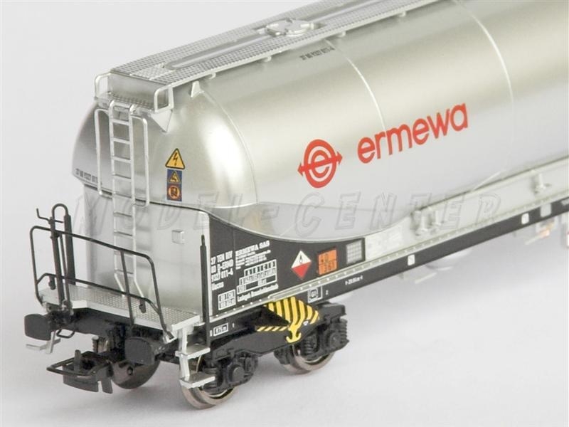 Carro silos tipo Uacns trasporto polveri, con scritta "Ermewa" delle DB. Epoca VI - Lunghezza < 23,9 cm > - Scala HO.