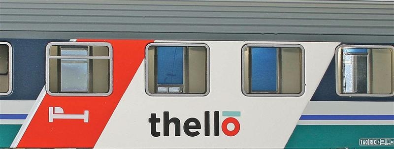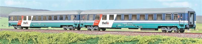Set composto da due carrozze a cuccette T4 nella livrea della società Euronight “Thello” in servizio tra Venezia e Parigi. Epoca VI - Lunghezza < 60,6 cm > - Scala HO.