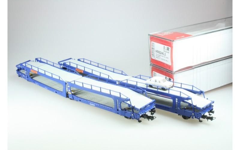 Set di due carri trasporto auto tipo Laekks delle FS. Epoca V/VI. Lunghezza 61 cm. Scala HO.