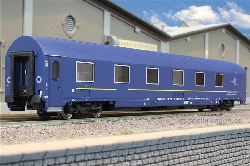 Carrozza letti MUn in livrea originale, senza logo NS, immatricolazione internazionale "14" anni 2004/2006. Epoca VI - Lunghezza 30,3cm. Scala HO.