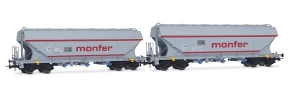 Set 2 carri tramoggia tipo Uagpps in livrea "Monfer" in grigio chiaro con fasce rosse, immatricolati I-ERA. Epoca IV - Lunghezza < 34,6 > - Scala HO.