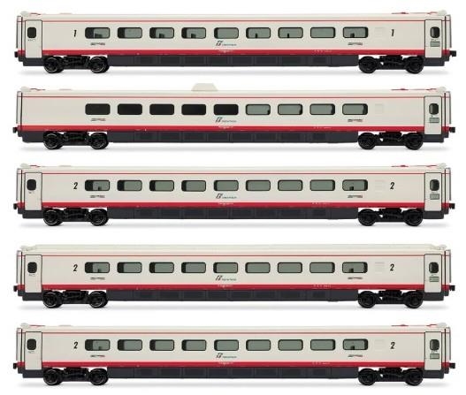 Set composto da cinque elementi aggiuntivi, una carrozza di prima classe, una carrozza Ristorante, e tre carrozze di seconda classe, a completamento del treno classe ETR 460 FRECCIABIANCA di Trenitalia, rifinitissime, Sistema Nem, Lunghezza <149.0> Cm. , Ep. VI, Scala H0.